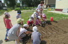 Зурлар төркеме балалары тәрбияче Ахметсафина Ләйсән Миннехазиевна белән берлектә чөгендер утырттылар. Балалар иң беренче чиратта җирне йомшартып, тигезләргә кирәклеген искәрттеләр, буразналар ясап орлыкларны салдылар һәм су сиптеләр. Яшелчәләр үссен өчен көннәр җылы булып, су сибәргә, чүп үләннәрен утап, туфракны йомшартып торырга кирәклеген аңлаттылар.