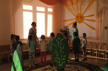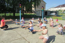 Көн саен иртән саф һавада физик тәрбия бирүче тәрбияче Аухадиева Нурания Әюповна балалар белән иртәнге гимнастика үткәрә. Монда алган күтәренке, яхшы кәеф көне буена җитә.