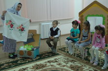 Балаларны татар халкының милли мәдәнияты, гореф-гадәтләре, кул эшләре, уеннары белән тирәнтен таныштыру максатыннан уртанчылар төркеменең әти-әниләр җыелышында Саматова Ләйлә Исмәгыйлевна "Әбиемнең серле сандыгы" исеме астында күңел ачу үткәрде. Элек кызлар, әби, апаларның кул эшләренә оста булуларын, аларның тегә, бәйли, чигә белүләрен, кичләрен бергә эшләүләрен, аннары күп төрле уеннар уйнауларын аңлатты. Ука белән чигелгән түбәтәй, калфак; сөлге, алъяпкыч, куляулыклар күрсәтте. Балалар белән "Түбәтәй", "Йөзек салыш, "Мәликә" уеннарын уйнадылар. Күңел ачу хезмәт турында мәкаль, әйтемнәрне искә төшерү; җыр, шигырләр сөйләү, табышмаклар чишү белән үрелеп барды.