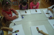 "Юлларда иминлик кирәк" атналыгы барышында балаларны юл йөрү кагыйдәләре, юл билгеләре, җәмагать транспортында үз-үзеңне тоту кагыйдәләре белән таныштыру буенча эш алып барыла. Уртанчылар төркеме балалары тәрбияче Гөлгенә Тәлгатовна берлектә "Светофор" ябыштырдылар.