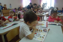 Ике дәүләт телен өйрәтүдә УМК ны куллану 30.10.2015 Мәктәпкәчә яшьтәге балаларга ике дәүләт телен тирәнтен өйрәтүдә УМК ның күрсәтмә, таратма кулланмаларын,аудио-видео язмаларын, эш дәфтәрләрен тәрбиячеләр киң кулланып эшлиләр. Зурлар төркеме балалары белән рус телен өйрәтүче тәрбияче Галиакбарова Алсинә Фаилевна рус телендә урындыкта, өстәлдә өстендә, урындык астында, өстәл астында төшенчәләрен истә калдыру максатынан эш дәфтәрләрен кулланды. Зәвык белән ясалган рәсемнәр, налейкалар ярдәмендә балалар кызсыкынып эшләделәр, аю, куян, песи, эт балаларын үз урыннарына дөрес итеп уртаныштырдылар һәм сорауларга тулы җавап бирделәр.