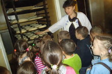 Ипи пешерү серләре 16.10.2015 Бүген зурлар төркеме балалары тәрбияче Ләйсән Хазиевна белән берлектә икмәк пешерү цехына экскурсиягә бардылар. Балаларны Идрисова Илмира Хамитовна каршы алды һәм ипинең өстәлгә килгәнче нинди юллар үтүен сөйләде, ипи пешерү серләре белән таныштырды. Шулай ук кондитер ризыклары, камыр ризыклары пешерү цехларында булып төрледән-төрле пироглар, торт ясау ысуллары күзәттеләр, хуш исле икмәктән авыз иттеләр. Икмәкнең өстәлгә килгәнче күпме кешенең кулы аша узганын, күпме кешенең хезмәте кергәнен искә төшереп, икмәккә карата сак караш тәрбияләнде.