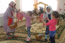 Нәүрүз - мөбәрәкбад 26.03.2015 Балаларны татар халкының гөреф – гадәтләре, милли бәйрәмнәре белән таныштыруны дәвам итү. Нәүрүз - язны каршылау, язгы чәчү эшләре алдыннан үткәрелә торган халык бәйрәме икәнен аңлату максатыннан "Нәүрүз - мөбәрәкбад" исеме астында бәйрәм булып узды. Бәйрәм төркемнән төркемгә йөреп, такмаклар әйтеп башланды. Әйлән-бәйлән уеннары, җыр, бию, шигырләр сөйләп Нәүрүз бикәне каршы алу, Кыш бабайның килүе, аларның үз ара көч сынашулары балаларга күңелле мизгелләр бүләк итте. Бәйрәм уңаеннан пешерелгән Карга боткасынан, күчтәнәчләрдән һәркемгә өлеш чыкты.