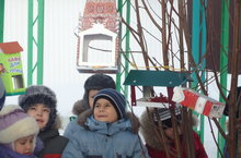 Бездә кышлаучы кошлар 12.12.2014 Балаларда кошларга сакчыл караш, мәрхәмәтлелек, кайгыртучанлык тәрбияләү, ярдәм итәргә теләк тудыру, аларны рәнҗетмәскә кирәклеген төшендерү; кошлар турында белемнәрен баету, ныгыту, өлкәннәр ярдәмендә җимлекләр куярга өйрәтү, аларга кешеләрнең ярдәме бик әһәмиятле булуын аңлату; тышкы билгеләренә (төсе, зурлыгы), үз-үзләрен тотышларына карап, кышлаучы һәм күчмә кошларны аерып күрсәтә белү күнекмәләрен үстерү максатыннан үткәрелгән “Бездә кышлаучы кошлар” атналыгы барышында "Кошларга ярдәм итик" акциясе үткәрелде. Балалар тәрбияче апалары белән берлектә кошларга җимлек ясап аны бакча биләмәсендәге агачларга элделәр. Кошларны төрле ярма,көнбагыш, балан, миләш белән сыйладылар.