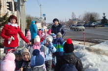 Бакчабызда балаларны юл йөрү кагыйдәләре белән таныштыру ел дәвамында алып барыла. Язгы каникулның беренче көнендә икенче кечкенәләр, уртанчылар, зурлар, мәктәпкә әзерлек төркеме балалары Мәктәп һәм Муса Җәлил урамнары кисешкән юл чатына экскурсиягә чыктылар. Балалар тәрбиячеләр белән берлектә транспорт, җәяүлеләр хәрәкәтен, светофор эшчәнлеген күзәттеләр. Куелган билгеләрне күзәтеп аларның нәрсә аңлатканнары турында әңгәмә алып бардылар. Балалар машина юлын кисеп чыкканда бары тик махсус билгеләр булган урыннардан гына чыгарга яраганлыгына төшенделәр. Экскурсия барышында җәяүлеләрнең һәм транспорт йөртүчеләрнең бер-берсенә игътибарлы булып, ике якның да юл йөрү кагыйдәләрен төгәл үтәргә тиешлеге аңлатылды.