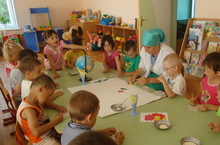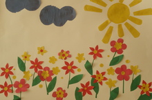 "Һәрвакыт тынычлык" атналыгы планы нигезендә бүген бакчабыз балалары чәчәкләр турында сөйләштеләр. Максаты: балаларның чәчәкләр турында белемнәрен баету, чәчәкләрне танып белергә, тасвирлап сойләргә өйрәтү. Чәчәкләр тынычлыкны, матурлыкны билгеләүче символлар булуын аңлату. Чәчәкләргә сакчыл караш, туган як табигатен өйрәнү теләге тәрбияләү.Әлеге рәсемдә зурлар төркеме балалары иҗади күмәк эш белән мәшгуль, алар аппликация ысулы белән чәчәкләр болыны ясыйлар.