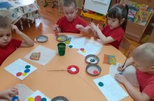 Балаларны жонглер һөнәре белән таныштыру, төсенә һәм зурлыгына карап карап тугәрәкләр ябыштырырга кунектеру, игьтибарлылык тәрбияләү максатыннан икенче кечкенәләр төркеме балалары кисеп-ябыштыру эшчәнлеге барышында "Фил-жонглер" ясадылар