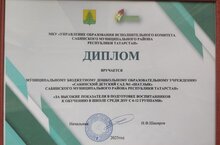 Саба муниципаль районы педагогик хезмәткәрләренең август киңәшмәсе барышында 6-12 төркемле мәктәпкәчә белем бирү учреждениеләре арасында балаларны мәктәпкә әзерләүдә югары күрсәткечләре очен МБМБУ Саба 1 нче "Шатлык" балалар бакчасы Диплом белән бүләкләнде - 1 урын.