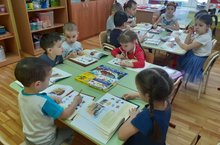 Беренче кечкенәләр төркеме кызлары курчакларны йоклатып, чәй эчертеп, ә малайлары машина төзәтеп, машина йөртеп матур гына аралашып уйнылар. Тәрбияче апалары бер-берсе белән килешенеп уйнауларын, бер-берсенә юл куярга кирәклеген төшендерә, аңлата.