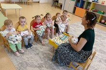 На этой неделе в нашей ясельной группе царила особенная, тёплая атмосфера. Всё потому, что темой наших занятий стала «Моя семья». Мы решили познакомить наших малышей с самой главной семейной заботой — уходом за маленьким ребёнком. Как же это было? Мы вместе учились бережно пеленать кукол, превращая их в самых настоящих «малышей». Неловкие, но такие старательные пальчики пытались аккуратно завернуть края пелёнки. А потом, держа своих «деток» на руках, мы учили их укладывать спать. Мы тихонько пели колыбельные песни — те самые, что вы, родители, поёте вечером. И под тихое мурлыканье «баю-бай» каждый осторожно укладывал свою куклу в настоящую маленькую кроватку.