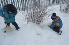 Балаларга экологик тәрбия бирү һәм табигатьне саклау максатыннан уртанчылар төркемендә күп кырлы эш алып барыла. Менә бүген дә балаларыбыз мәйданчыктагы куакларыбыз салкында туңмасыннар дип аларны кар юрганы белән каплыйлар. Эшне бик тырышып, күңел биреп эшлиләр.