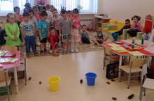 Бүген икенче кечкенәләр төркеме балалары янына кунакка куян балалары килде. Балалар куяннарны түгәрәк һәм өчпочмак белән таныштырдылар, төрле предметларның төркем тигзлеген урнаштырырга өйрәттеләр, предметларның саны аларның размерына бәйле булмавын аңлаттылар. Ахырдан куян балалары өчен матур өй төзеп бүләк иттеләр. (Сайфутдинова Г.З.).