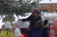 Бүген икенче кечкенәләр төркеме балалары янына тиен баласы кунакка килде.Урманда үзенә күңелсез булуын, бер нинди дә уеннар уйный белмәвен сөйләде. Балалар аңа яратып уйнаган кышкы уеннарын өйрәтеп, бүләккә кар йомарламы ясадылар. (Сайфутдинова Г.З.).