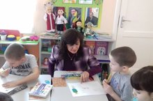 Укытучы Энҗе Рафиковна балаларның эшчәнлекләрен зур кызыксыну белән күзәтте. Балалар янына килеп биремнәрне эшләүләрен карады.
