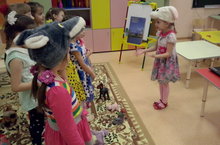 В нашем детском саду регулярно дети занимаются изучением английского языка. Дети учавствуют в роли персонажей, слушают и поют песни, занимаются зарядкой и играют в подвижные игры. Занятия проходят очень динамично. Дети не успевают соскучиться, за короткий срок осваивают новый материал, и самое главное - у них появляется желание прийти ещё на занятие.