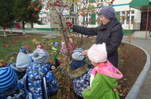 Уртанчылар төркемендә балаларны агачлар һәм куаклар белән таныштыру дәвам итә. Әлеге фоторәсемдә балалар балан агачы белән танышалар.