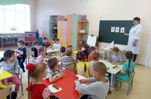 В нашем детском саду, каждый день после утренней гимнастики для детей средней, старшей и подготовительных групп проводится пальчиковая гимнастика. Движение рук и пальцев детей, сопровождаемые короткими стишками, благотворно действуют на развитие детей. Усиливается согласованная деятельность речевых зон, развивается память и воображение, а также расширяется лексический запас слов. Кисти и пальцы рук приобретают гибкость и податливость, что впоследствии облегчает овладение навыками письма.