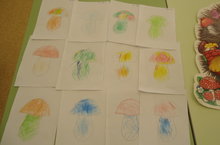 Бүген икенче кечкенәләр төркеме балалары иҗади сәнгать эшчәнлегендә ашарга яраклы гөмбәләр белән таныштылар һәм аланда үскән гөмбәләрне буядылар. (тәрбияче Шарипова Ф.М.),