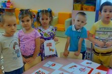 "Россия- зур дәүләт. Халыклар бердәмлеге" атналыгы кысаларында уртанчылар төркеме балалары белән Россия флагы һәм гербы белән таныштык. (Тәрбияче Шарипова Ф.М.).