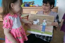 Шигъри әсәрнең эчтәлеген аңлауларына,сорауларга дөрес җавап бирүләренә ирешү; тәрбияче артыннан аерым сүзләрне,фразаларны кабатларга теләү уяту.