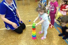 Цель деятельности: Развивать у детей умение результативно действовать с игрушками, развивать координацию мелких движении кистей рук; учить понимать слово надень, сними, кольцо.