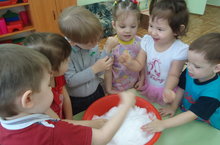 Туган ягыбызда кыш хакимлек итә.Бар дөньяны ап-ак итеп карлар ява. Кармы? Кар! Без өлкәннәр шулай дип кенә карыйбыз, ә менә яңа гына аякка басып дөньяга чыккан сабыйлар алай дип кенә белмиләр шул. Алар өчен бу ак дөнья яңа бер ачыш һәм яңалык булып тора. Аларның бу ак могҗиза турында барысын да беләселәре килә һәм алар без өлкәннәргә үзләренең сорауларын яудыралар:"ни өчен ак", "ни өчен күп"," ни өчен салкын?" Кечкенә баланың бу мәһабәт дөньяны үз күңеле аша үткәреп танып беләсе ,тотып һәм эшләп карыйсы килә. Бакчабызда үтә торган "Күп беләсем килә"атналыгы кысаларында без балалар белән күп төрле тәҗрибәләр,экспериментлар үткәрәбез.Бүген безнең беренче кечкенәләр төркемендә (тәрбиячеләре Шарипова Ф.М, Хайрутдинова Г.М.) "Сихри кар бөртекләре" исеме астында танып белү эшчәнлеге үтте.Без яңа яуган карны савытка салып группага алып кердек һәм ялангач кул белән тиеп, йомарлап, уч төпләренә куеп карадык. Аннары без карны лупа аша карап аның бик вак кисәкләрдән торганлыгын ачыкладык.Карның салкын булуын һәм җылыда эрегәнлеген балалар бик кызыксынып күзәттеләр. Эшчәнлек ахырында без түбәндәге нәтиҗәне ясадык: безнең кар бөртекләребез бары тик кыш көне салкын вакытта гына күп итеп ява ала. Ә көннәр җылыткач алар эреп бетәчәк сулар, гөрләвекләр булып агачак.