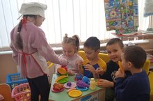 Зурлар төркеме белән кичке якта сюжетлы - рольле уеннар оештырылды. Атналык тема һөнәрләр дөньясы буларак, балаларга табиб һәм чәчтараш һөнәре турында мәгълүмат бирелде, балалар үзләре уйнап карарга булды. Балаларга шифаханә һәм чәчтарашханә сюжетлы- рольле уены уйнау ошады, рәхәтләнеп уйнадылар.
