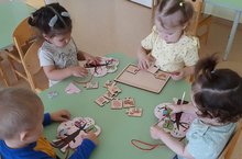 Иң кечкенәләрнең беренче кечкенәләр төркеме нәниләренең сөйләмен, игьтибарын, бармаклар, кул чукларының моторикасын үстерү максатыннан төрле вкладышлар, шнуровкалар белән уеннар оештырыла. -
