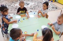 С целью формирования сенсорных эталонов, развития мелкой моторики, активизации речи, с малышами первой группы раннего возраста были организованы настольные дидактические игры, в которых воспитатель демонстрировала последовательность игровых действий, затем ребятки выполняли эти действия самостоятельно. -