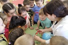 Цель данной беседы - научить детей экономить воду,сформировать у них мысль,что вода - это ограниченный ресурс,который нужно беречь. Дети старшей группы провели простейшие опыты и эксперименты с водой. В ходе беседы использовали глобус в качестве наглядного пособия. Воспитатели групп показали детям,что на нашей планете больше воды,чем суши.