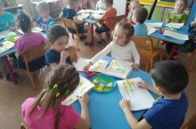 Бүген ясле төркеменә куян төсле таякчык тутырылган тартма белән кунакка килде. Балалар төсле таякчыкларны күреп сөенделәр. Төсле таякчыкларның төсләрен әйтеп үттеләр һәм алардан өйләр ясадылар. Куян белән уен уйнадылар.