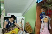 Атна темасы буенча 2 нче кечкенәләр төркеме балалары бакчабыздагы татар мохитен чагылдырган үзәккә(әби-бабайга) кунакка бардылар. Алар татар халкының тормышы,көн -күреше белән таныштылар. Әби-бабай балалар килешкә үзләренең сандыкларын әзерләп куйганнар. Сандык эчендә булган байлыкларны балалар бик кызыксынып карадылар.