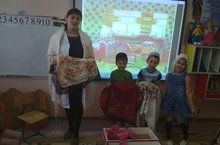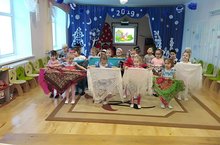 Атна темасы уңаеннан, уртанчылар төркеме балалары, бүген "Әбигә кунакка бардылар". Малайлар башларына түбәтәйләр киеп, кызлар иңнәренә шәлләр куеп. Алар кунакта татар халкының милли киемнәре белән танышуны дәвам иттеләр. Төрле татар халкының биюләрен, җырларын бшкардылар. Әбидән балалар бик канәгать булып кайттылар.