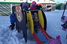 Уртанчылар төркеме балалары саф һавага чыккач, рәхәтләнеп таудан шуып уйныйлар.
