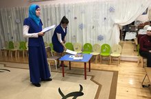 В рамках недели русского языка воспитанники средней группы под руководством воспитателя Хазиевой А.Г и воспитателя по обучению русскому языку Мавлявиевой Л.А показали русскую народную сказку «Теремок» на русском языке детям старшей и подготовительной групп.
