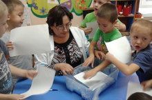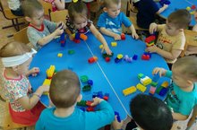 Беренче кечкенәләр төркеме балалары "Лего" төзү материаллары белән бик яратып һәм кызыксынып уйныйлар. Алар бу төзү материалларыннан машиналар, самолётлар, краннар, өйләр төзиләр.