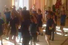 Икенче кечкенәләр төркеменең иртәсе күңелле гимнастикадан башлана. Балалар бик кызыксынып һәм тырышып хәрәкәтләнәләр.