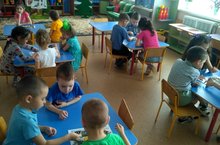 Икенче кечкенәләр төркеме балалары бүген ябыштыру эшчәнлегендә, (тәрбиячеләре Хазиева А.Х) флагчыклар ябыштырдылар. Үзләренең эшләреннән бик канәгать калдылар.