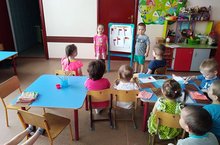 Бүген икенче кечкенәләр төркеме балалары (тәрбиячеләре Хазиева А.Х) танып белү эшчәнлегендә “Автобуска” утырып сәяхәткә бардылар. Алар су, һава, коры-җир, тимер юл, транспорт сүзләрен активлаштырдылар. Эшчәнлеккә бибабо курчагы-Бака кергәч, шөгыль тагын да ямьләнеп китте.