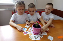 Зурлар төркеме балалары "Кактусны бизәү" уены аша сүзләрдәге [с] һәм [ш] авазларын ишетеп аерырга, дөрес әйтергә өйрәнәләр.