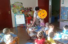 Бүген икенче кечкенәләр төркеменең, рәсем шөгыленә балаларның күңелләрен күтәреп “Кояшкай” килеп керде. Төркем тагын да якты һәм ямьле булсын өчен, ул кояшчыклар ясарга тәкъдим итте. Балалар бик теләп риза булдылар. Шөгыль ахырында балаларның рәсемнәреннән бүлмә тагын да матурланып китте.