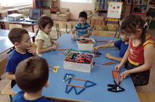 Зурлар төркеме әйтелгән табышмакка җавап табып таякчыклардан геометрик фигуралар төзеделәр.Ел фасылларын өйрәнүне дәвам итәләр,бияләйләрне парлап ничә балага җитәсен санап,серле рәсемнәр арасыннан эйтелгән санны эзләп таптылар һәм янәшә торган саннарны чагыштырырга өйрәнделәр.