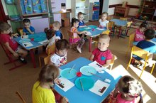 Икенче кечкенәләр төркеме балалары тәрбиячеләре Хазиева А.Х. белән аппликация шөгылендә юлларга шарлар ябыштырдылар. Пумала, җилем сүзләрен активлаштырдылар.