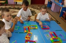 Бүген зурлар төркеме балалары тәрбияче Мухаметшина С.С. белән “көймәгә” утырып Математик сәяхәткә бардылар.Бер санын танырга һәм аны нокталар буенча язарга өйрәнделәр.Бер һәм ике саннарының ничек барлыкка килүенә төшенделәр һәм аларны чагыштырып карадылар.Преметларның зурлыгын - иң биек ,тәбәнәгерәк,иң тәбәнәк төшенчәләрен ныгыттылар.