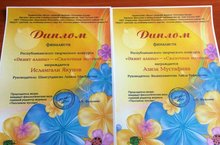 "Тылсымлы куллар" журналы редакциясе, Республика күләмендә оештырган, "Әкият аланы "иҗади конкурсында, безнең бакчабыздан Мустафина Азиза (җитәкчесе Валимухаметова Л.Р) - "Азиза чәчәкләре" һәм Якупов Исламгали (җитәкчесе Шамсутдинова Л.М.) - "Кыска койрык" әкиятләре белән катнашып финалист дипломнарына лаек булдылар. Аларны бу җиңүләре котлыйбыз һәм алга таба да иҗади уңышлар телибез!!!