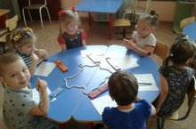 Бүген тәрбияче Богавеева Г.Ш. зурлар төркеме балалары белән кул хезмәтеннән "Уенчыклар" темасына шөгыль үткәрде. Балалар турыпочмаклы кәгазьне бөкләп, үзләре яраткан уенчыкларын: аю, куян, төлкене ясадылар. Эш барышында шушы уенчыкларны чагылдырган хәрәкәтле уен уйнадылар. Кунакка әкияттән тылсымчы килеп, балаларга әкият геройларына иптәшләр ясарга тәкъдим итте.