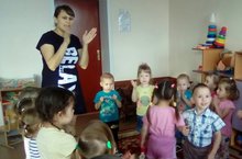 Икенче кечкенәләр төркемендә балалар тәрбияче апалары Хайриева Гөләрия Таһировна белән режим вакытларында җырлы-биюле “Утыр, утыр, Мәликә”,”Түбәтәй”,”Куянкай”,”Күрсәт әле,Габдулла!” кебек уеннар уйнарга яраталар. Туган көннәре булган балаларга “Ак калач” уенын уйнауны аеруча да көтеп алалар, яратып башкаралар..Җырлы-биюле уеннар балаларда җыр һәм музыканың характерына туры китереп хәрәкәт итү күнекмәләре формалаштыра,халык авыз иҗаты белән кызыксыну һәм аларга карата мәхәббәт тәрбияли, күңел күтәренкелеге алып килә,матурлык тойгысы уята.