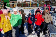 "Кыңгырау" балалар бакчасының зурлар төркеме балалары режим моментларын файдалы һәм кызыклы үткәрәләр. Саф һавада кышкы уеннар уйныйлар, табигатьнең матурлыгына сокланалар һәм кар белән уйнауларына шатланалар. Аларның тизрәк кардан тау өеп, шуннан шуасылары килә.