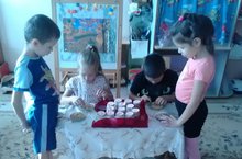 2 кечкенәләр төркеме балалары математиканы уйный-уйный үзләштерәләр. Тәрбиячеләре Хайриева Г.Т. белем бирү эшчәнлеген бик кызыклы итеп уен формасында үткәрде. Уен барышында балалар квадрат һәм түгәрәкне(круг) атый һәм таный белергә өйрәнделәр,предметларны сыйфатлары буенча классификацияли,характерлы билгеләр буенча образлар ясарга өйрәнделәр.