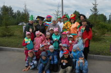 Бүген безгә кунакка яңадан клоун Смешинка килде. Ул балаларны поезд белән сәяхәткә чакырды. Смешинка төрле тукталышларда балалар белән кызыклы уеннар оештырды.Уеннар күңелле, заманча биюләр белән үрелеп барды. Ахырда клоун балаларга төсле мелоклар бүләк итеп бергәләшеп асфальтта рәсемнәр ясадылар. Балалар бик шат булдылар.